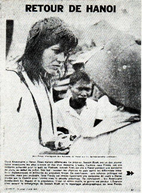 Der Text erschien unter dem Originaltitel Enquête sur une image in der Zeitschrift TEL QUEL Nr. 52 (Winter 1972). Er ist zugleich das Protokoll eines Films mit dem Titel Une lettre pour Jane (Ein Brief für Jane). Mit Genehmigung von TEL QUEL und der Filmmacher / Autoren zum Druck besorgt und übersetzt von Gerhard Theuring. - Hier zitiert aus: FILMKRITIK Nr. 211, München, Juli 1974, Seite 290-307. Der Text (li) lautet: Rückkehr aus Hanoi. - Jane Fonda, Bewohner von Hanoi über die amerikanischen Bombardierungen befragend. - Zwei Amerikaner in Hanoi. Zwei verschiedene Ansichten. Der erste, Joseph Kraft, ist einer der bekanntesten und umsichtigsten amerikanischen Journalisten. Die andere, die Schauspielerin Jane Fonda, ist eine leidenschaftliche Kämpferin für den Frieden in Vietnam. Joseph Kraft war Anfang Juli für vierzehn Tage in Hanoi. Sein Ziel war, nach verschiedenen diplomatischen und militärischen Initiativen von Präsident Nixon, die Friedenschancen zu taxieren. Seine Schlußfolgerung: eine politische Lösung ist möglich, jedoch wenig wahrscheinlich. Auch Jane Fonda ist für vierzehn Tage in Hanoi gewesen, eingeladen vom Komitee für die Freundschaft mit dem amerikanischen Volk. Ihre Schlußfolgerung: die Amerikaner bombardieren die Deiche und die Bevölkerung. Es ist ein sinnloses Verbrechen, der Krieg ist verloren. LŽExpress hat sich den Augenzeugenbericht von Joseph Kraft und die Photo-Reportage von Jane Fonda für die Veröffentlichung gesichert. |